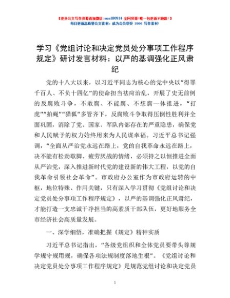 / 学习《党组讨论和决定党员处分事项工作程序规定》研讨发言材料:以严的基调强化正风肃纪