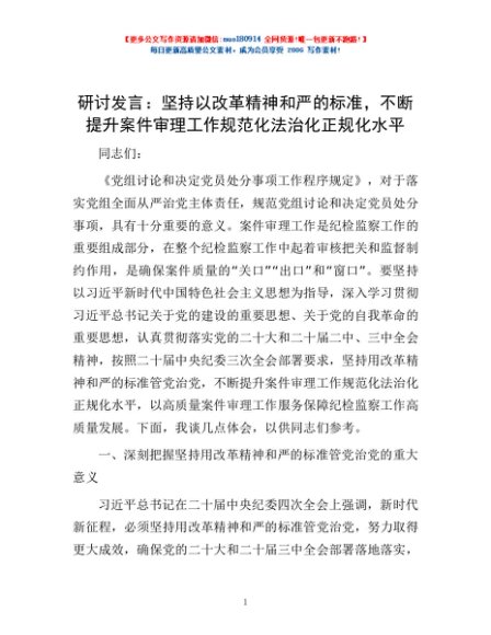 / 研讨发言:坚持以改革精神和严的标准,不断提升案件审理工作规范化法治化正规化水平