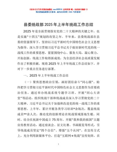 / 县委统战部2025年上半年统战工作总结