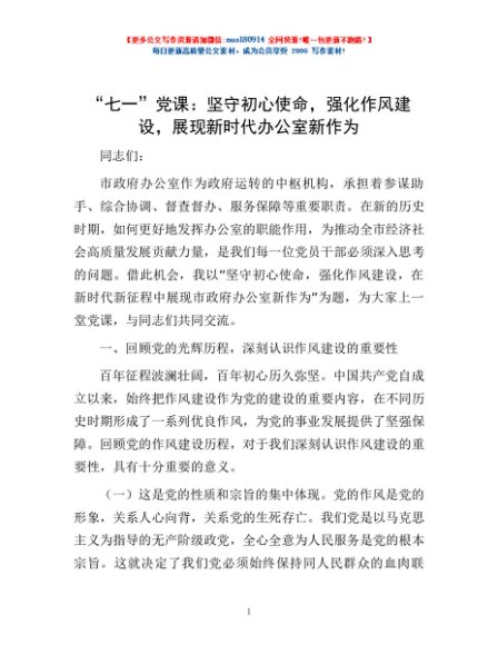 / “七一”党课:坚守初心使命,强化作风建设,展现新时代办公室新作为