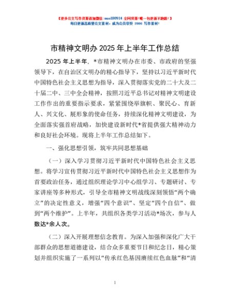 / 市精神文明办2025年上半年工作总结