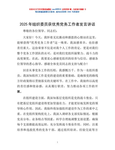 / 2025年组织委员获优秀党务工作者发言讲话