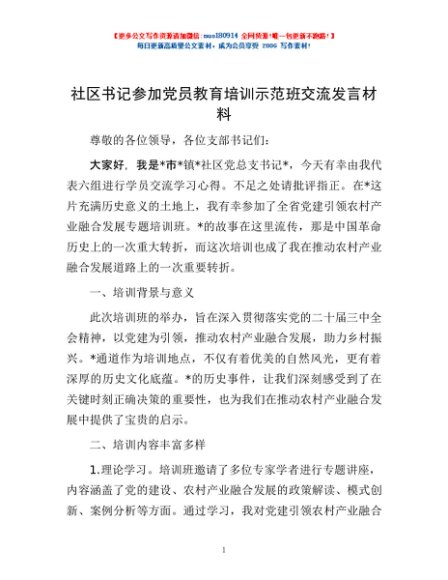 / 社区书记参加党员教育培训示范班交流发言材料