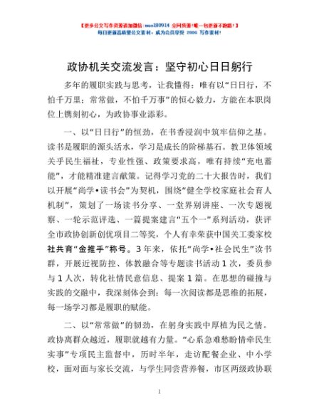 政协机关交流发言:坚守初心 日日躬行