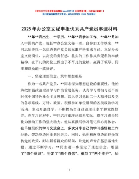 / 2025年办公室文秘申报优秀共产党员事迹材料