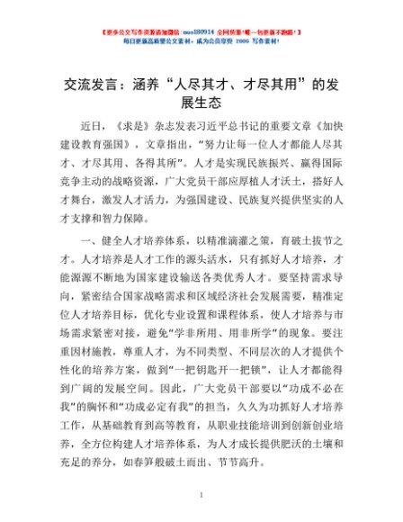 交流发言:涵养“人尽其才、才尽其用”的发展生态