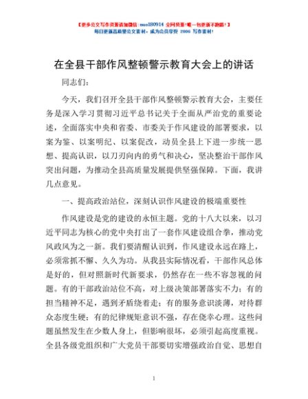 / 在全县干部作风整顿警示教育大会上的讲话