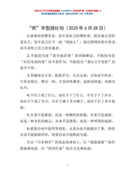 “而”字型排比句(2025年6月28日)