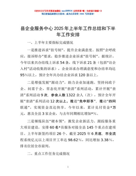 / 县企业服务中心2025年上半年工作总结和下半年工作安排