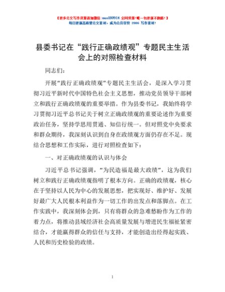 / 县委书记在 “践行正确政绩观” 专题民主生活会上的对照检查材料