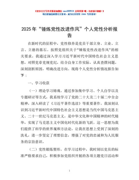 / 2025年“锤炼党性改进作风”个人党性分析报告