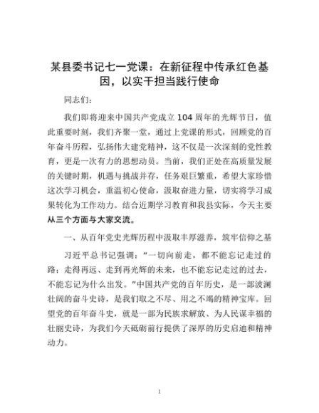 / 某县委书记七一党课:在新征程中传承红色基因,以实干担当践行使命
