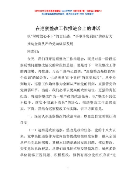 / 在巡察整改工作推进会上的讲话