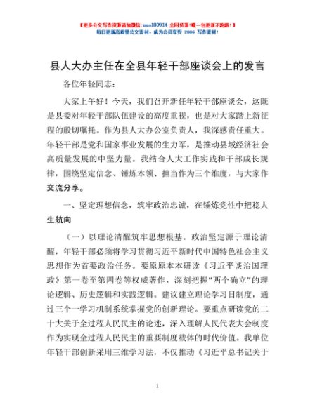 / 县人大办主任在全县年轻干部座谈会上的发言