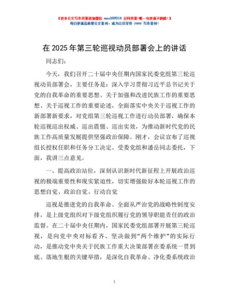 / 在2025年第三轮巡视动员部署会上的讲话