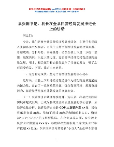 / 县委副书记、县长在全县民营经济发展推进会上的讲话