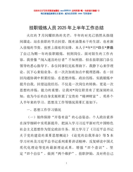 / 挂职锻炼人员2025年上半年工作总结