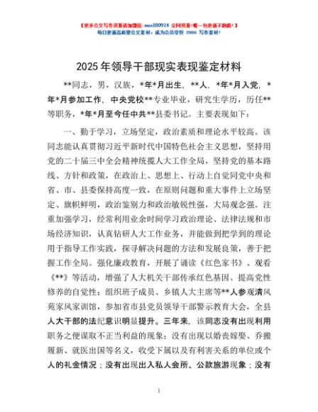 / 2025年领导干部现实表现鉴定材料