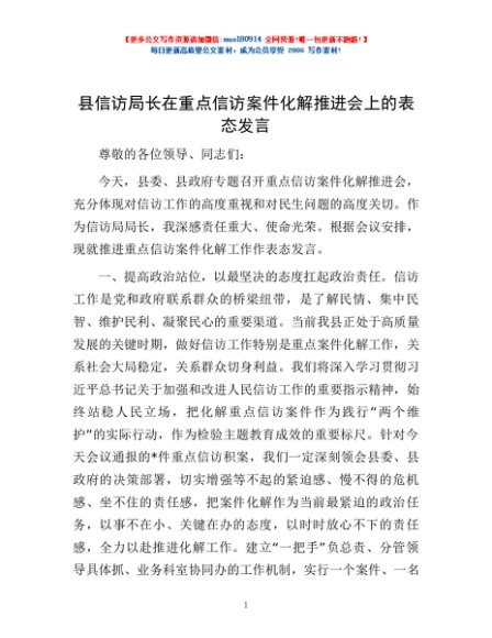 / 县信访局长在重点信访案件化解推进会上的表态发言