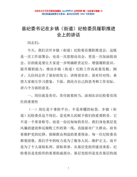 / 县纪委书记在乡镇(街道)纪检委员履职推进会上的讲话