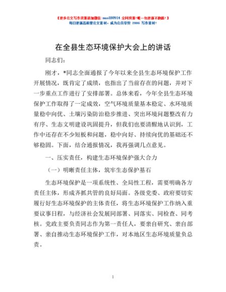 / 在全县生态环境保护大会上的讲话