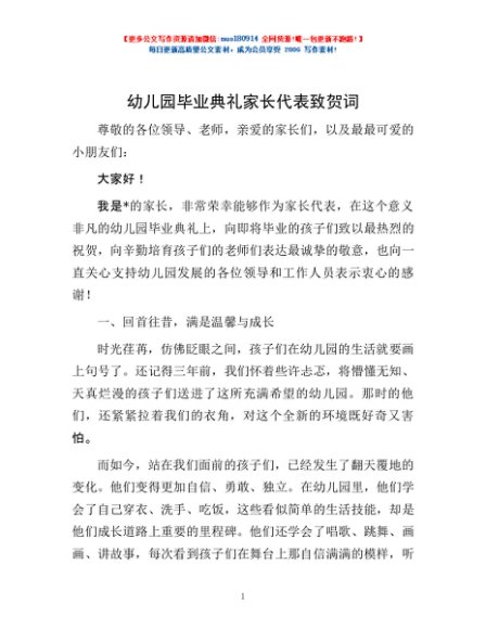 / 幼儿园毕业典礼家长代表致贺词