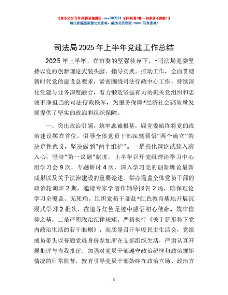 / 司法局2025年上半年党建工作总结