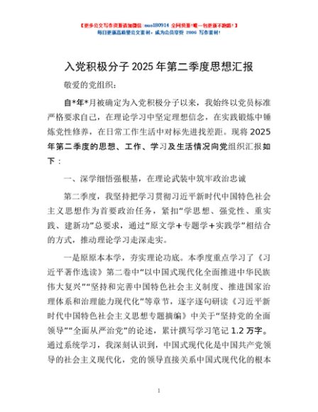 / 入党积极分子2025年第二季度思想汇报