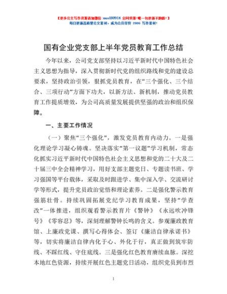 / 国有企业党支部上半年党员教育工作总结