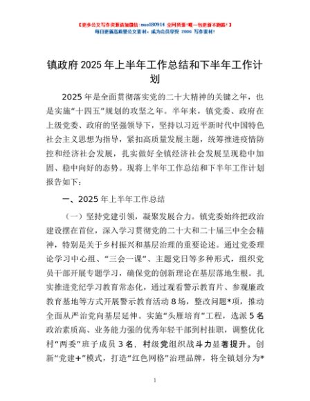 / 镇政府2025年上半年工作总结和下半年工作计划