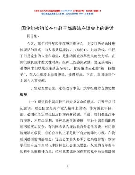 / 国企纪检组长在年轻干部廉洁座谈会上的讲话