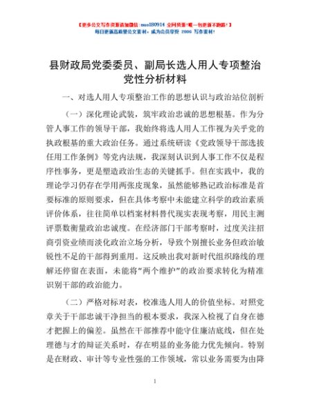 / 县财政局党委委员、副局长选人用人专项整治党性分析材料