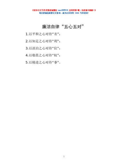 / 廉洁自律“五心五对”