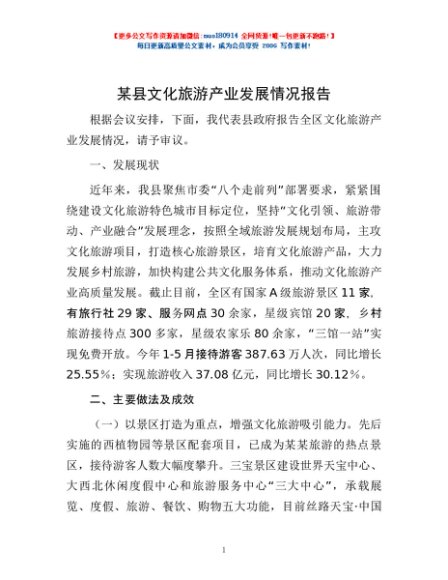 / 某县文化旅游产业发展情况报告