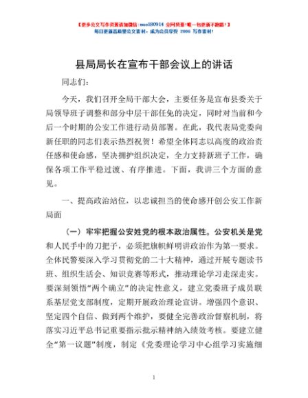 / 县局局长在宣布干部会议上的讲话