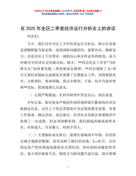 / 在2025年全区二季度经济运行分析会上的讲话
