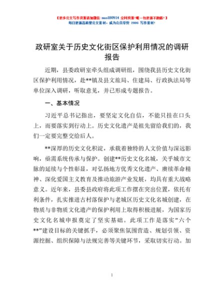 / 政研室关于历史文化街区保护利用情况的调研报告