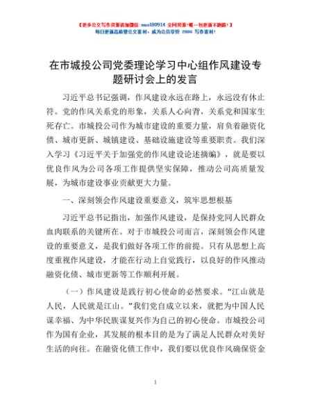 / 在市城投公司党委理论学习中心组作风建设专题研讨会上的发言