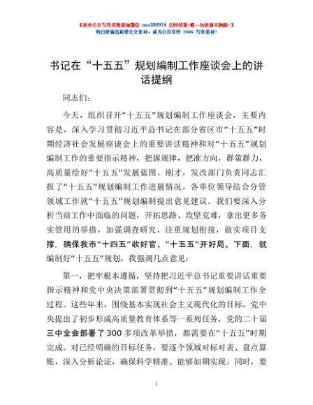 / 书记在“十五五”规划编制工作座谈会上的讲话提纲