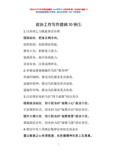 / 政协工作写作提纲30例①