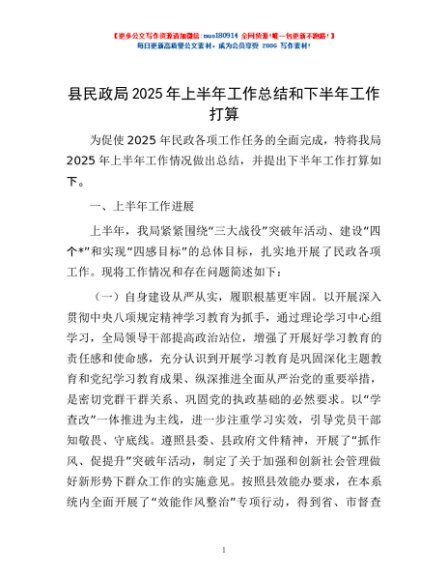 / 县民政局2025年上半年工作总结和下半年工作打算