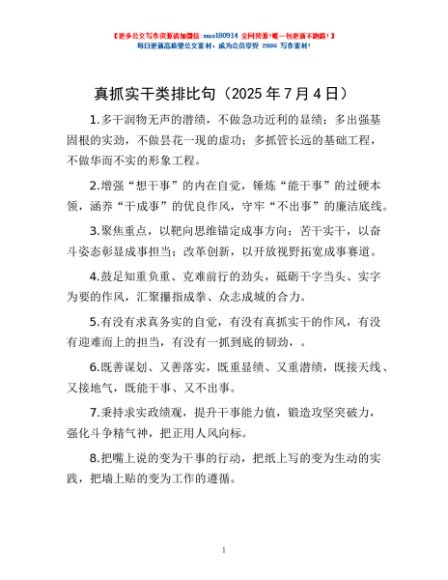 / 真抓实干类排比句(2025年7月4日)