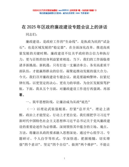 / 在2025年区政府廉政建设专题会议上的讲话