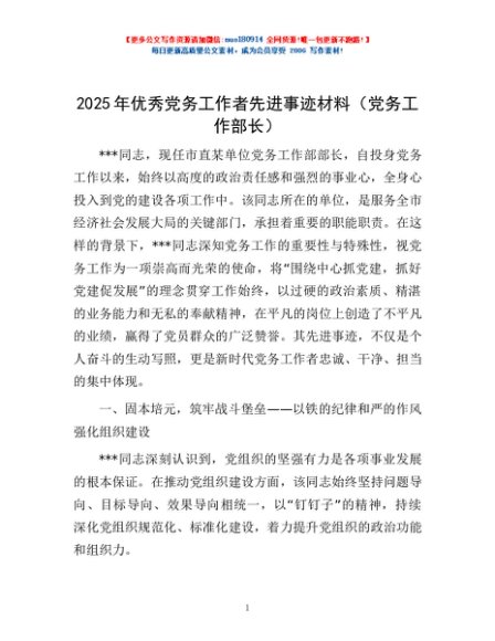 / 2025年优秀党务工作者先进事迹材料(党务工作部长)