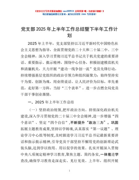 / 党支部2025年上半年工作总结暨下半年工作计划