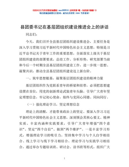 / 县团委书记在基层团组织建设推进会上的讲话
