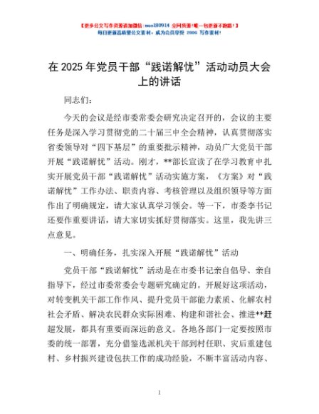 / 在2025年党员干部“践诺解忧”活动动员大会上的讲话