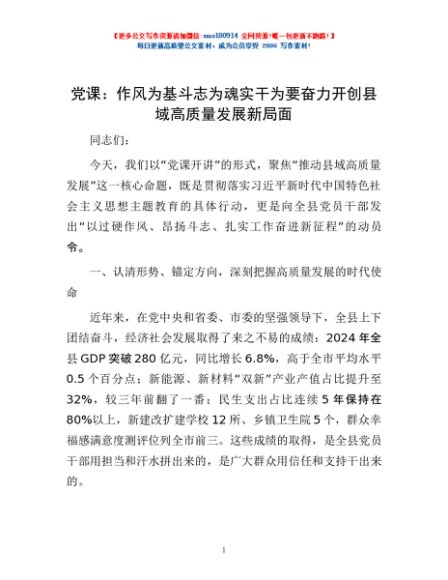 / 党课:作风为基 斗志为魂 实干为要 奋力开创县域高质量发展新局面