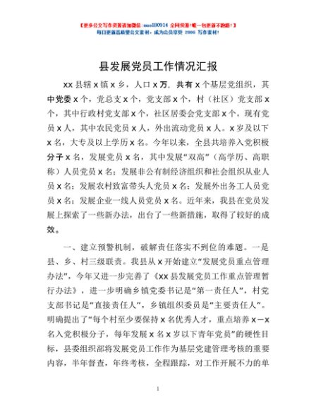 / 县发展党员工作情况汇报