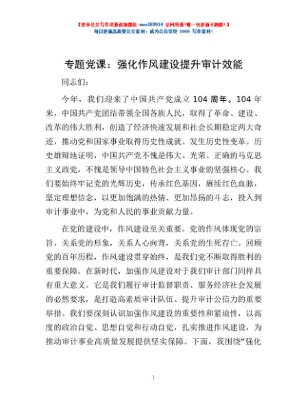 / 专题党课:强化作风建设 提升审计效能